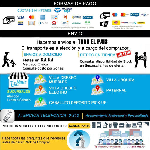 • Villa Crespo Electro: Lunes a Viernes 9 a 20hs / Sábado 9 a 19hs.