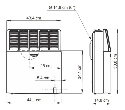 Diámetro orificio en pared de ventilación horizontal (cm): 14,8