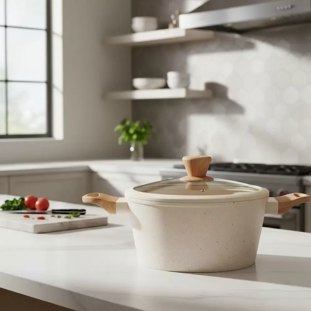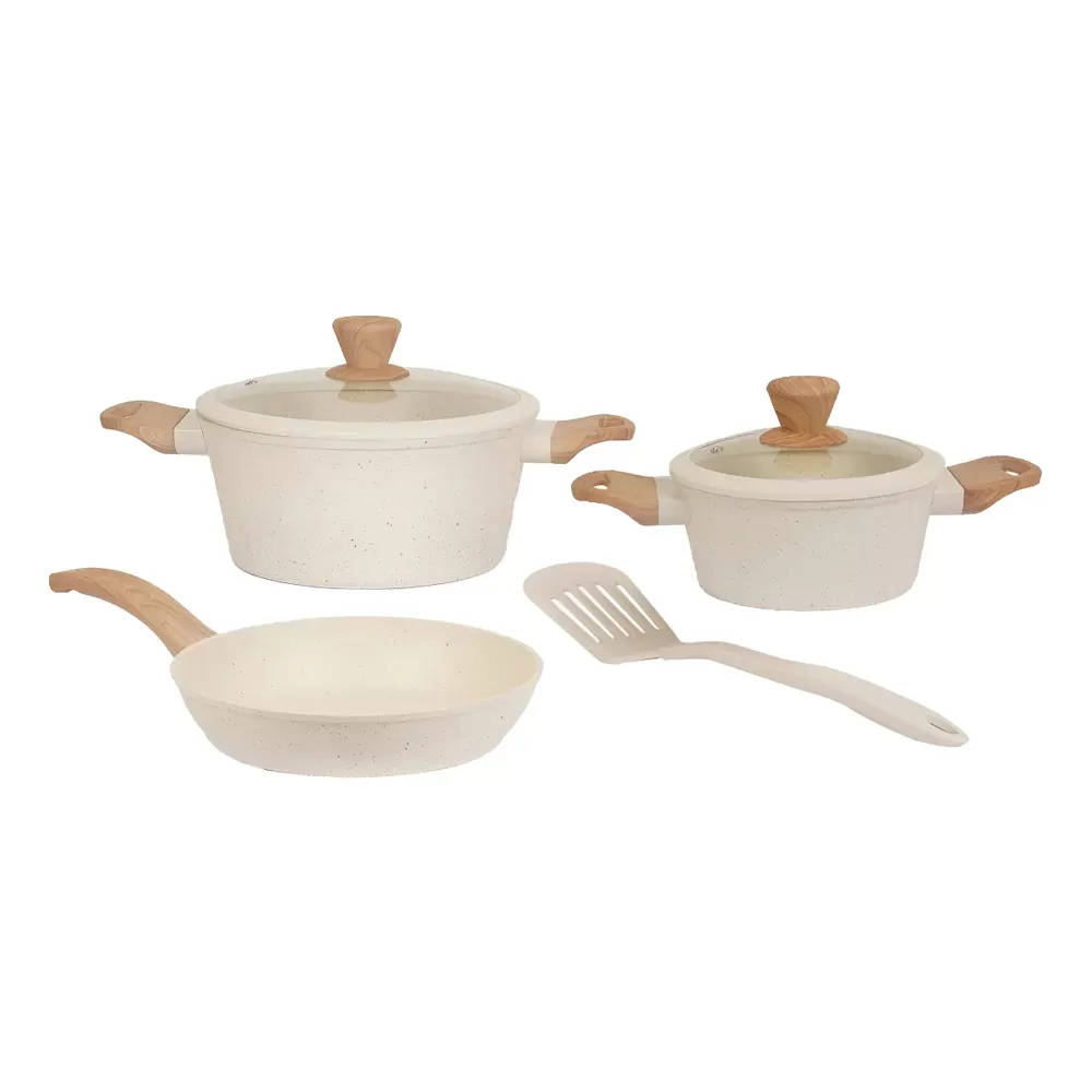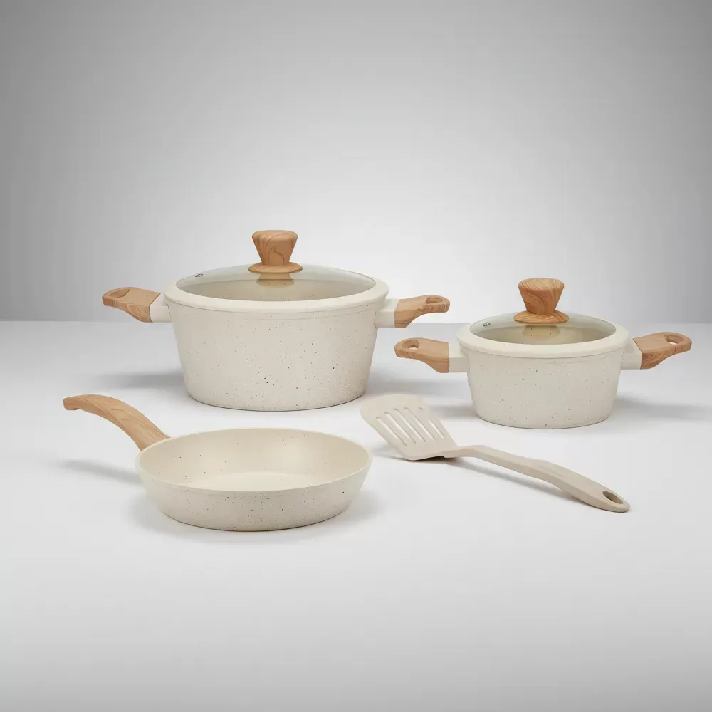 Bateria Cocina 6pzs Granito Inducción Cacerola Sarten Carol Beige