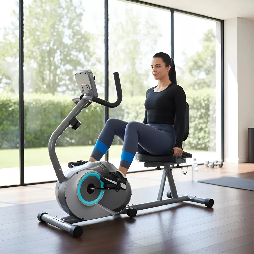 Los manillares ajustables de las bicicletas estáticas verticales le permiten andar en una postura perfecta.