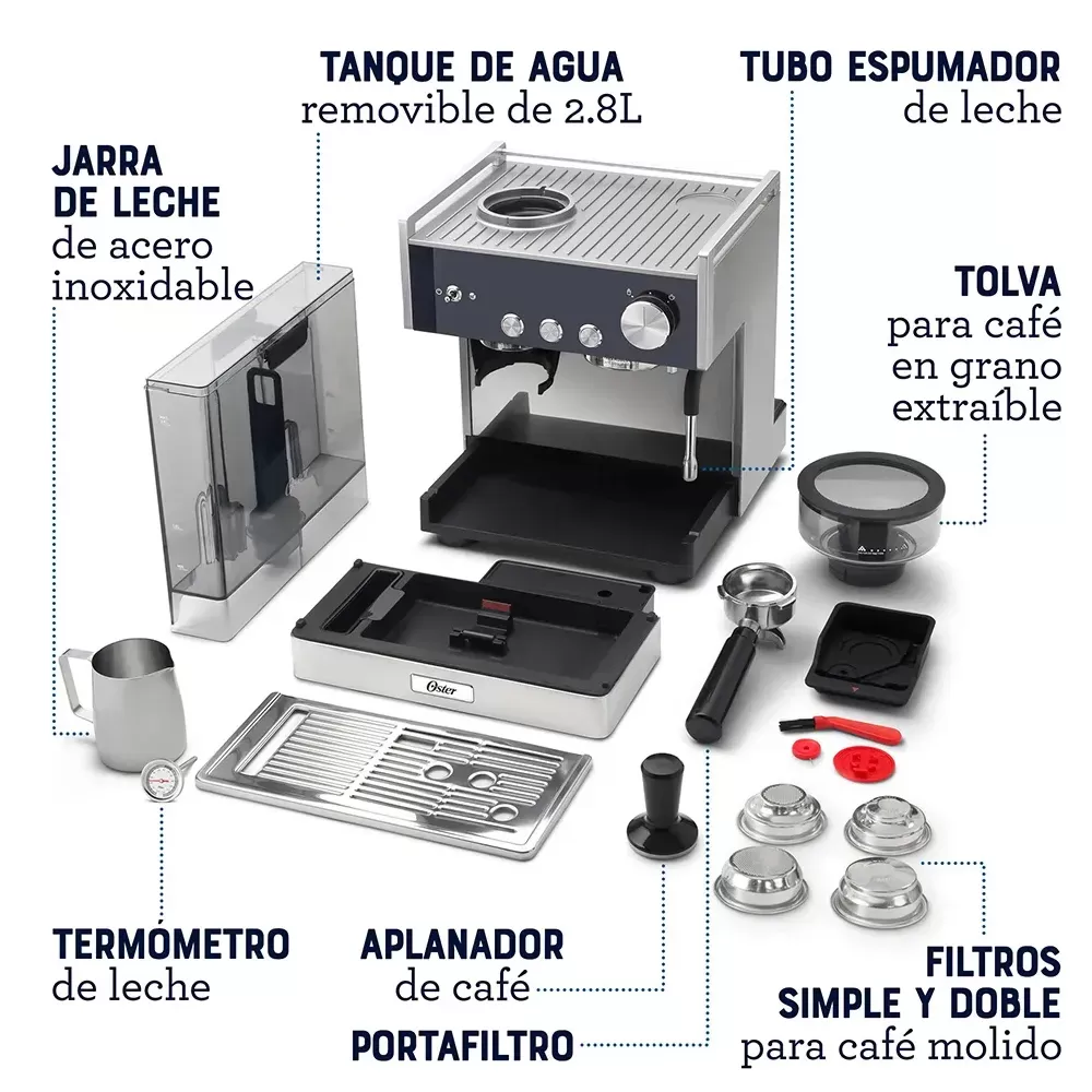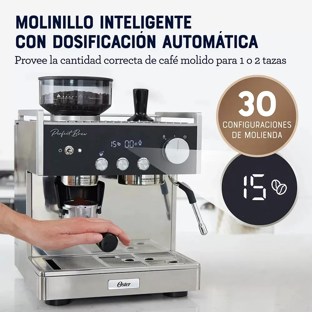 Cafetera Automatica Oster Bvstem7400 Espresso Barista 15 Bar - Plateado