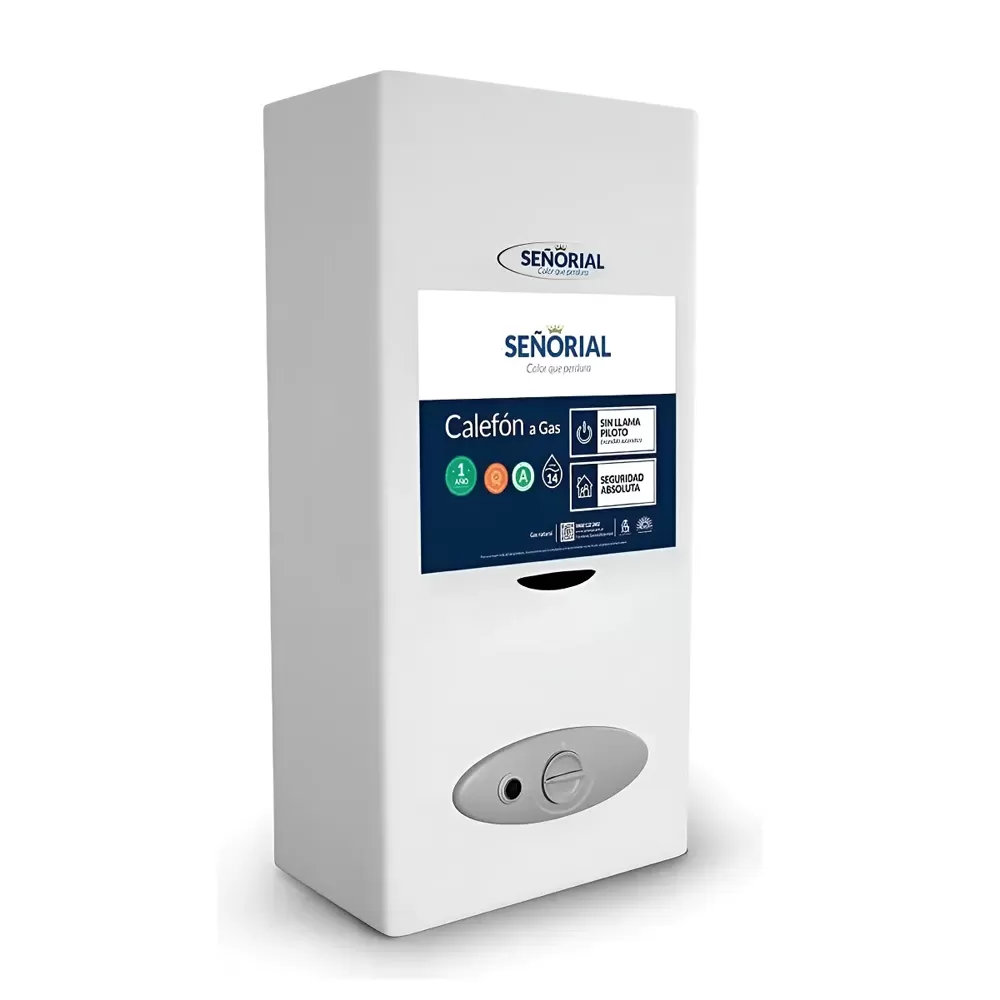 Este calefón de la reconocida marca Señorial es de origen argentino y está diseñado para ser duradero y eficiente. Con un peso de 51 kg y dimensiones compactas, se presenta en un embalaje adicional que protege el producto durante su transporte. Es una opción inteligente para quienes buscan calidad y responsabilidad energética en su hogar.