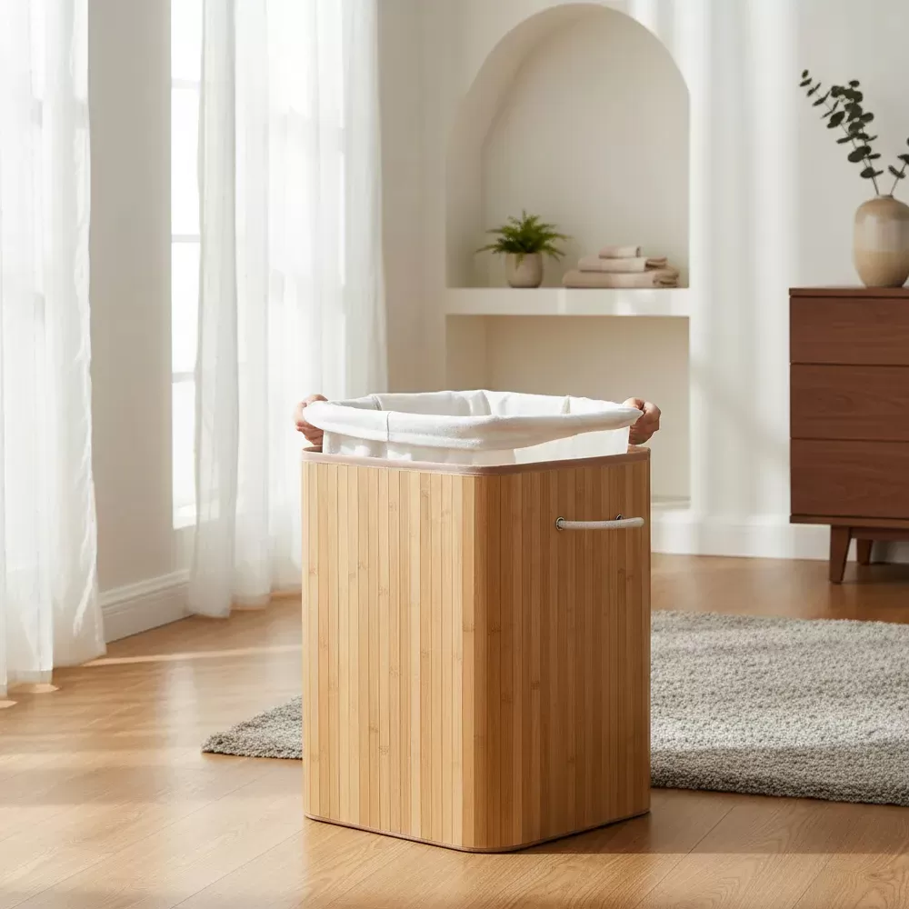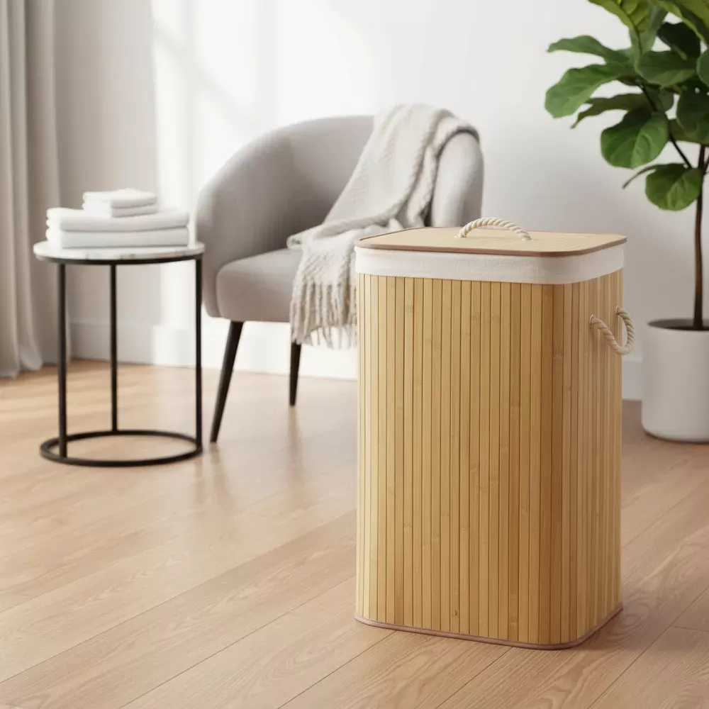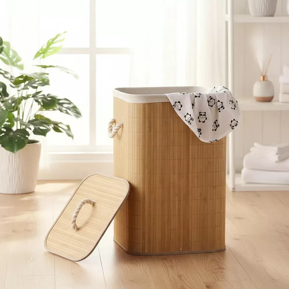 Canasto Cesto Ropa Sucia Tapa Bambu Con Asas Organizador Bambú Marrón