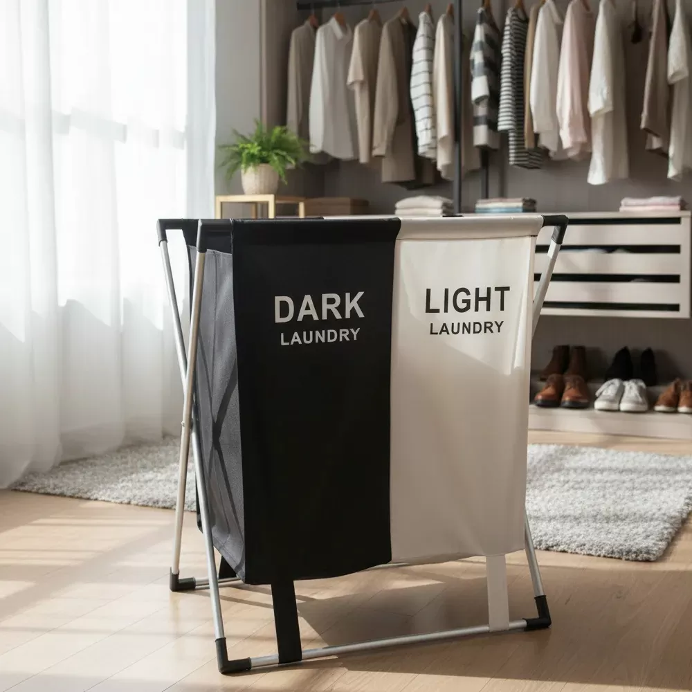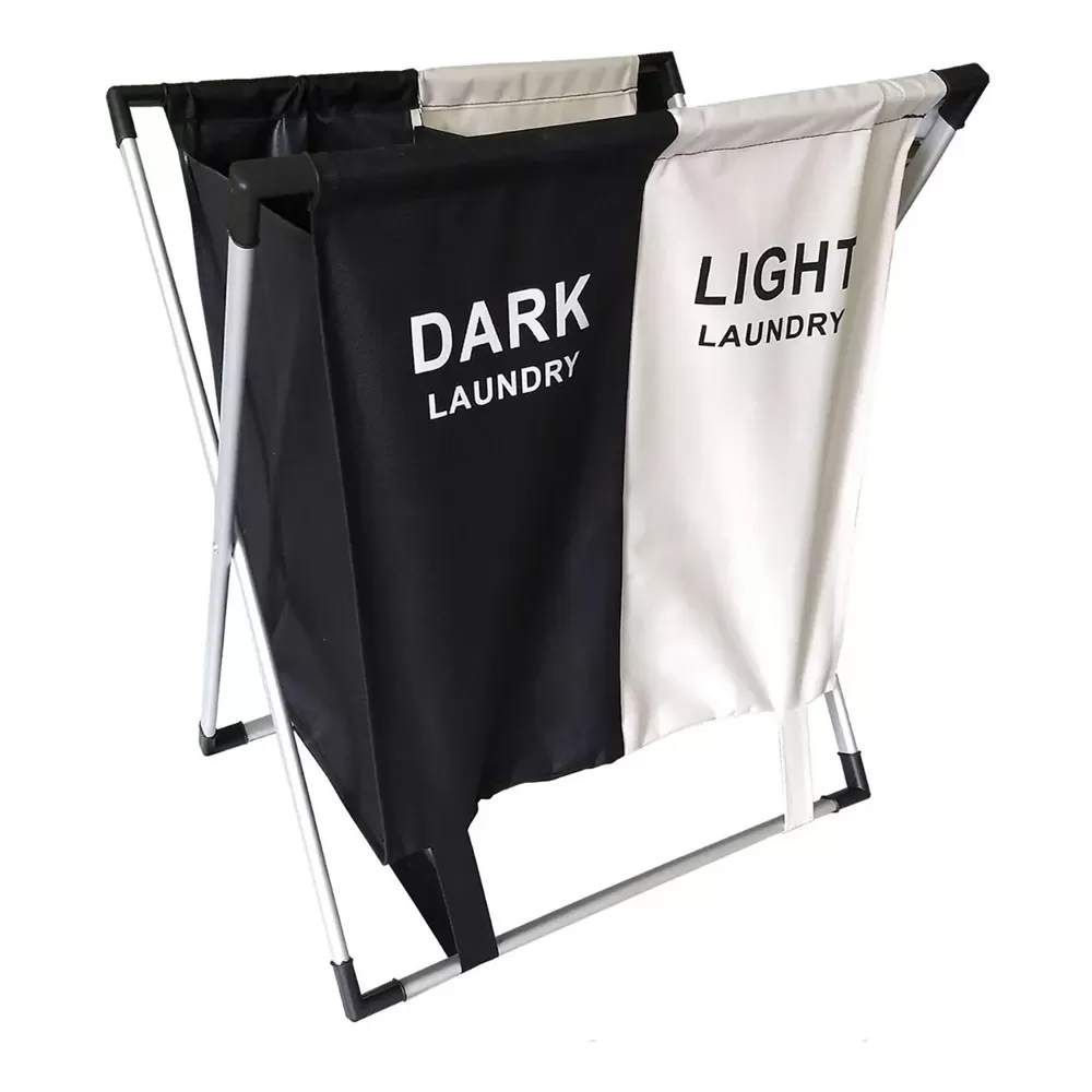 Cesto Canasto Doble Para Ropa Sucia Blanco Y Negro