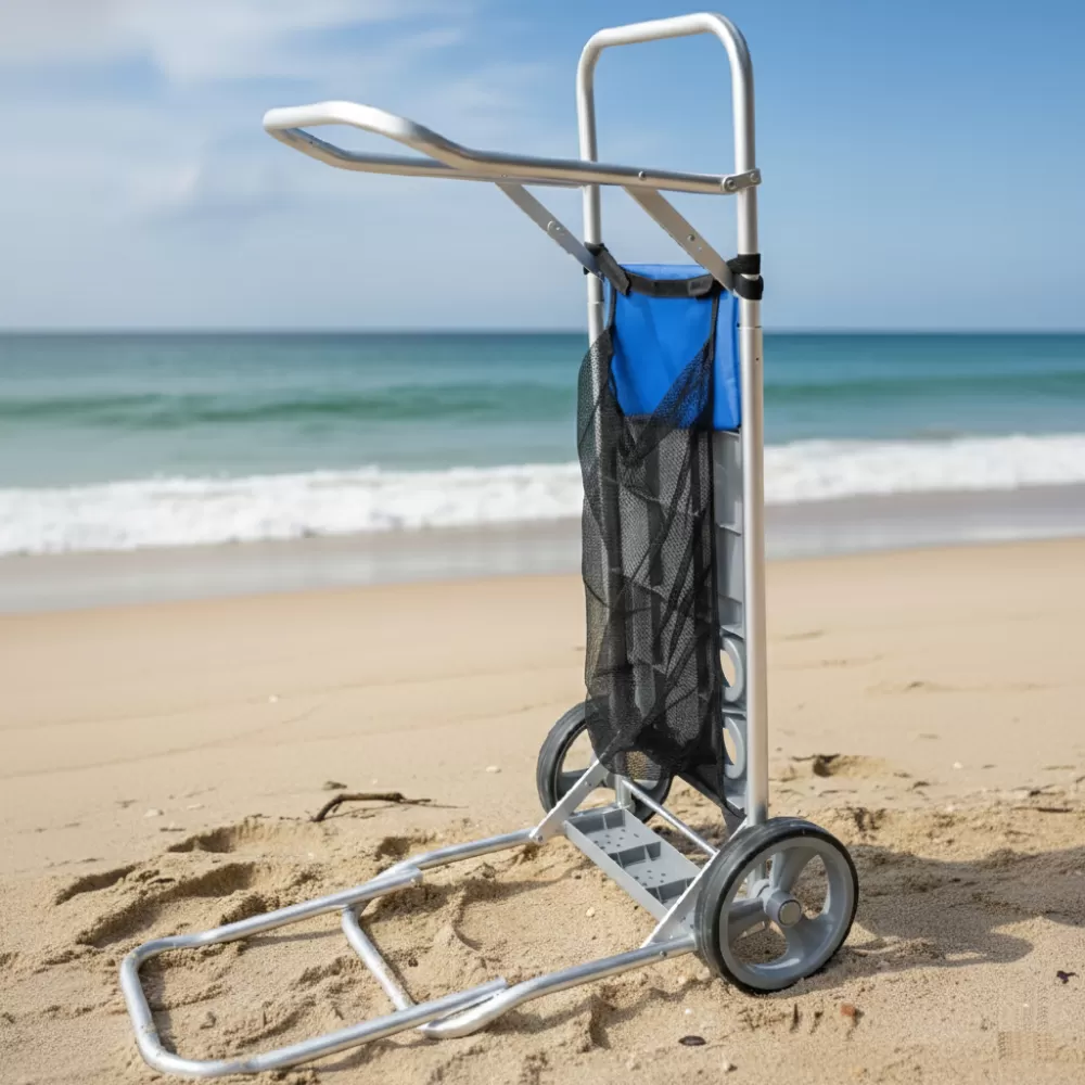 El carrito de mesa es ideal para transportar sillas de playa, sombrillas y otros objetos.
