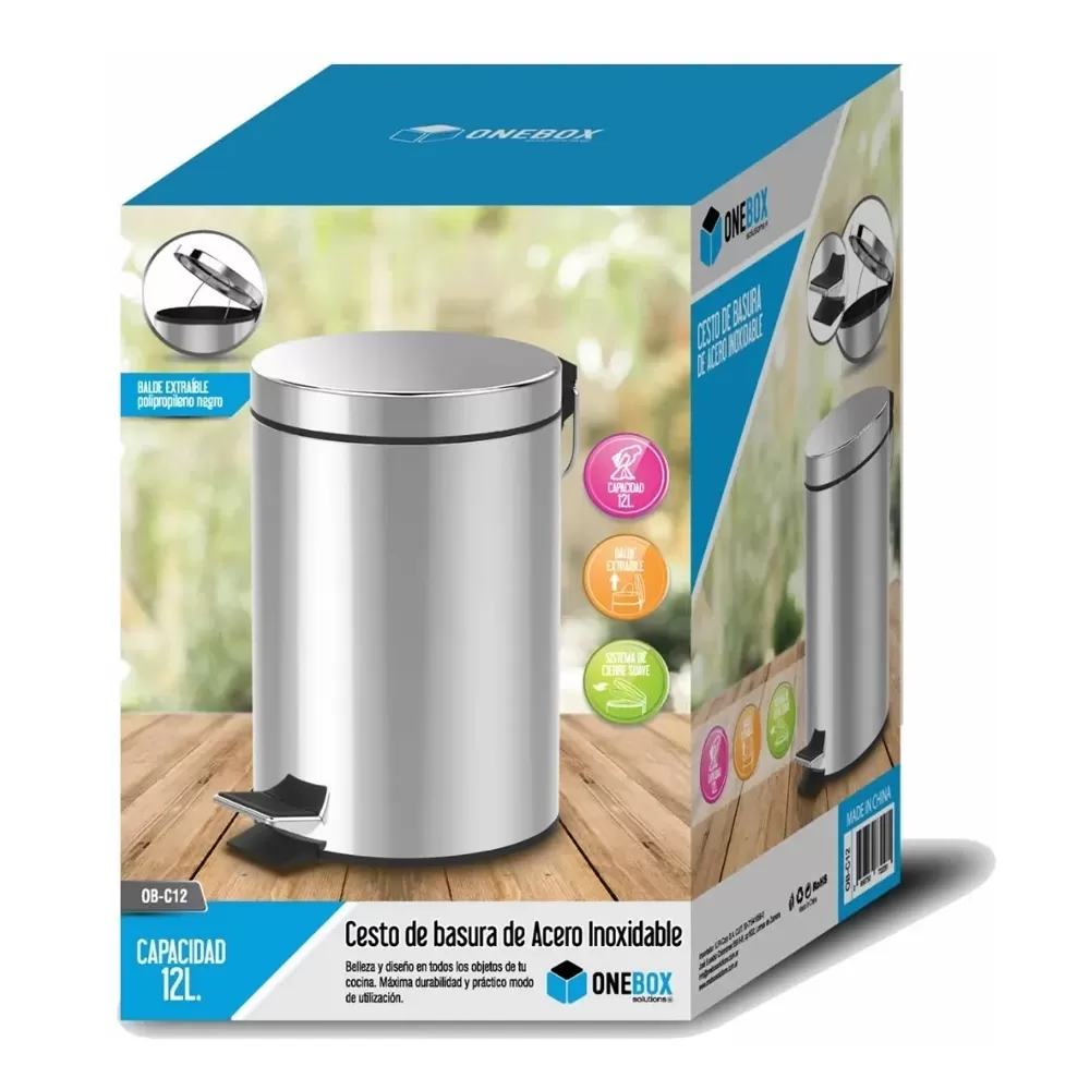 Cesto De Basura Acero Inoxidable Onebox Ob-c12 De 12 Litros - Gris