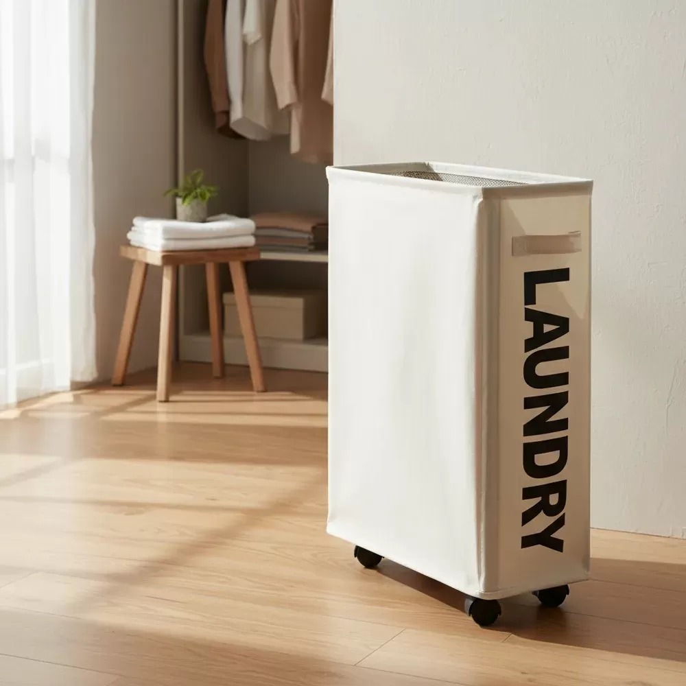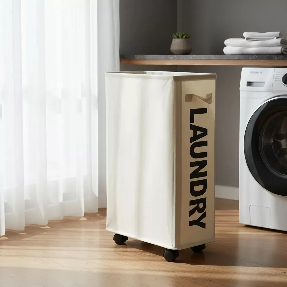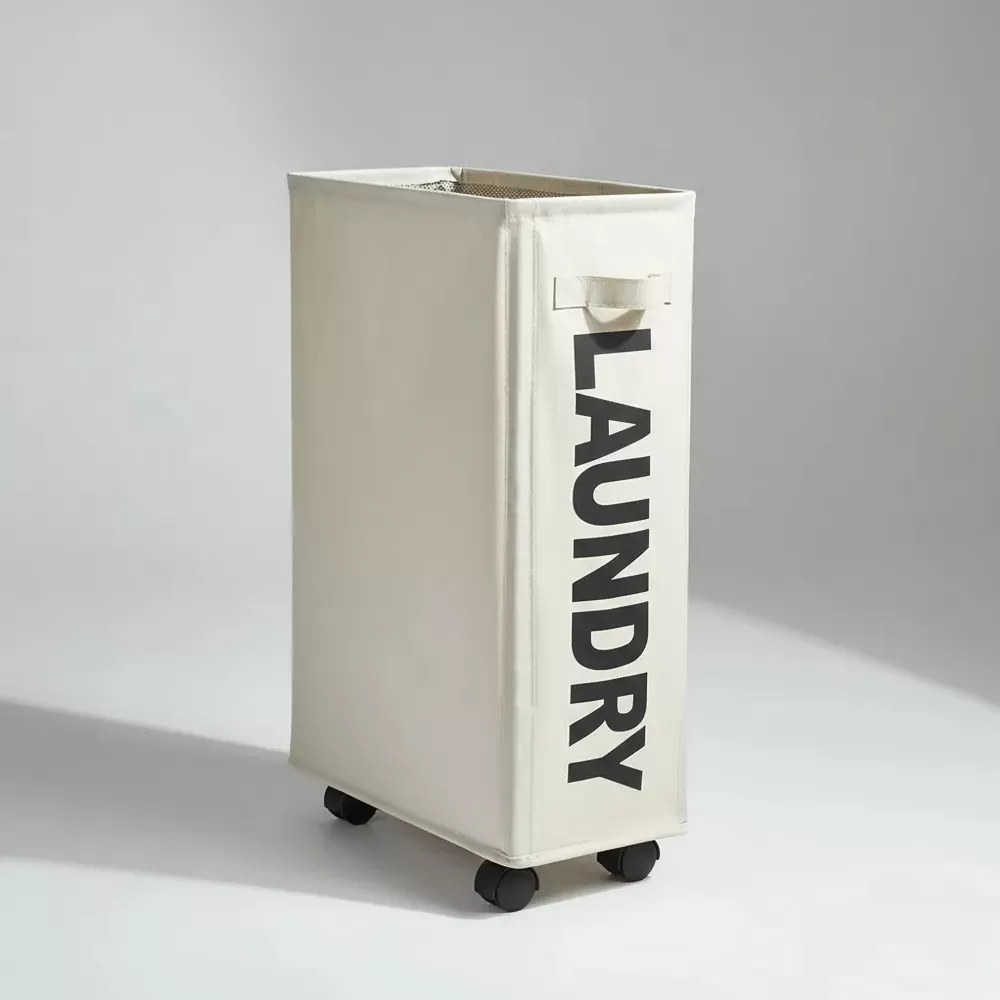 Cesto De Ropa Sucia Compacto Con Ruedas Rectángular Plegable Lisa Beige