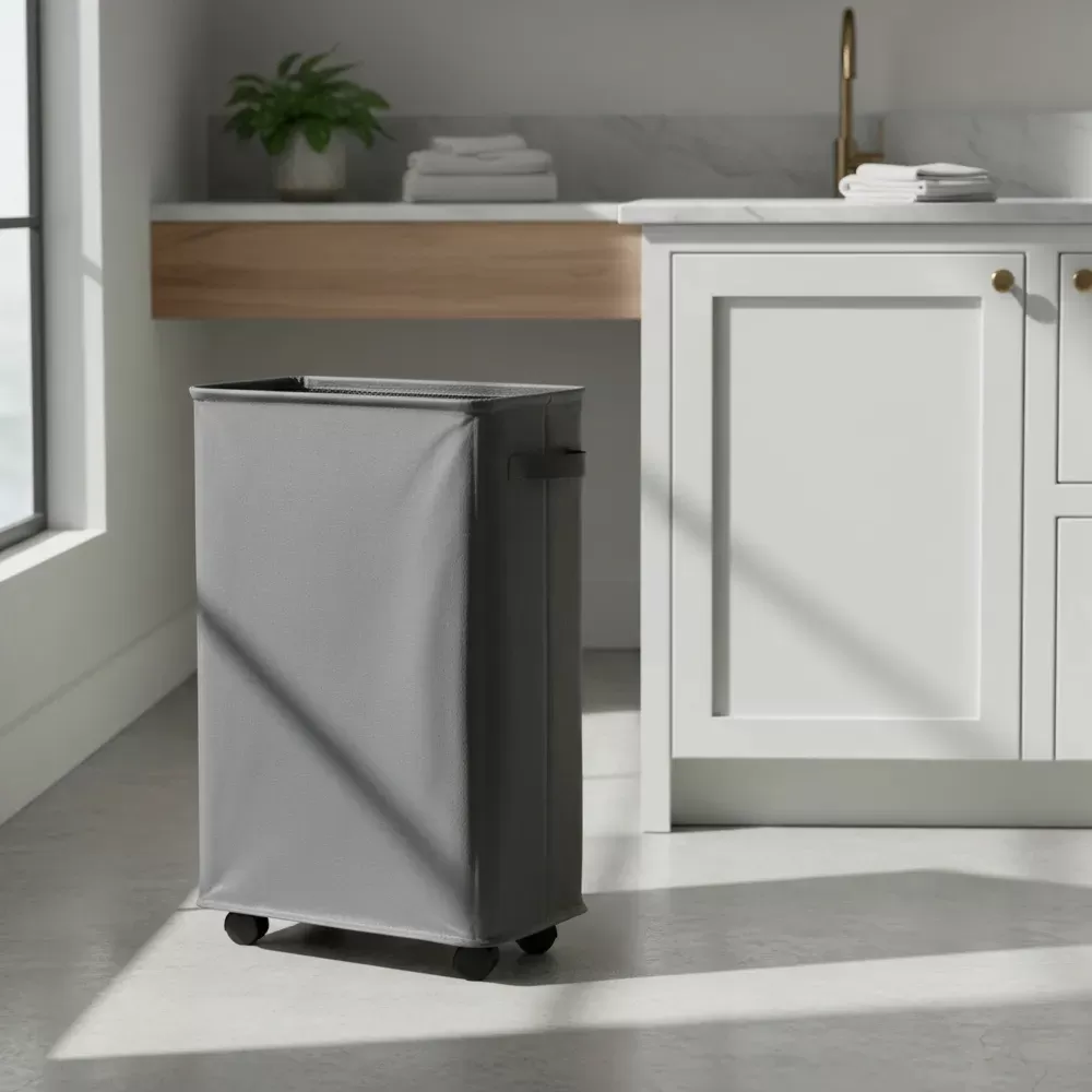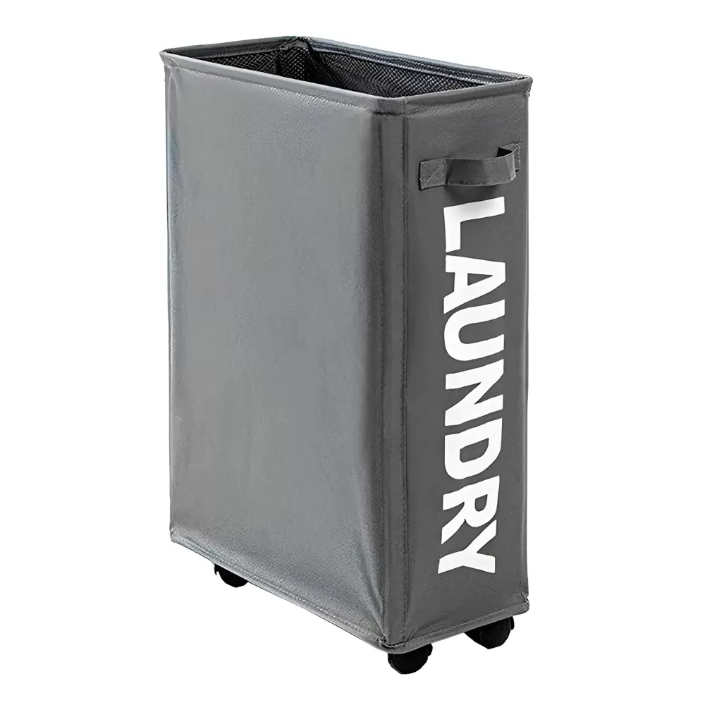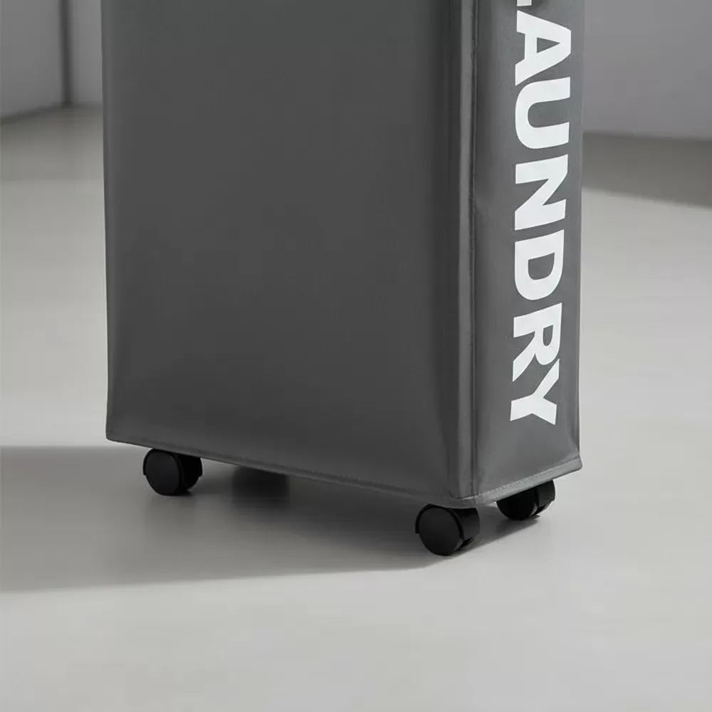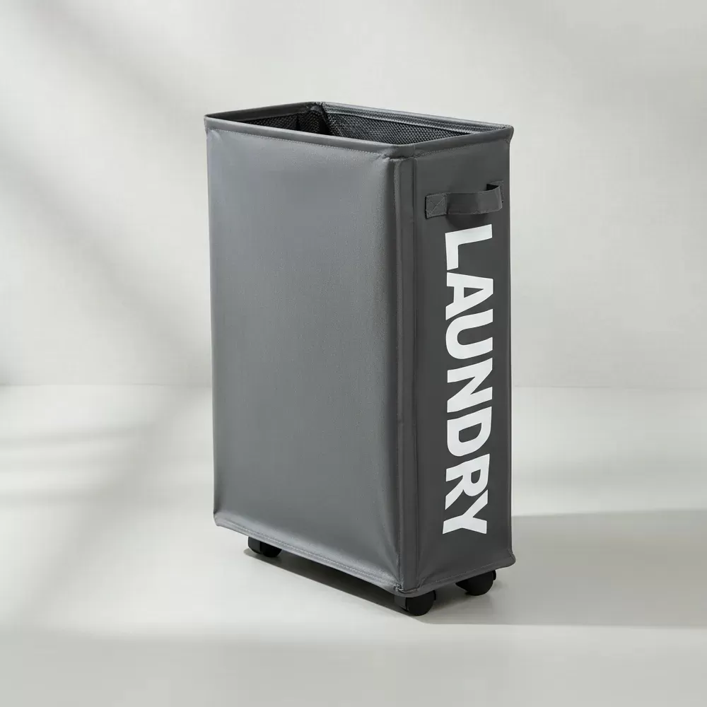Cesto De Ropa Sucia Con Ruedas Rectángular Plegable Compacto Gris Oscuro