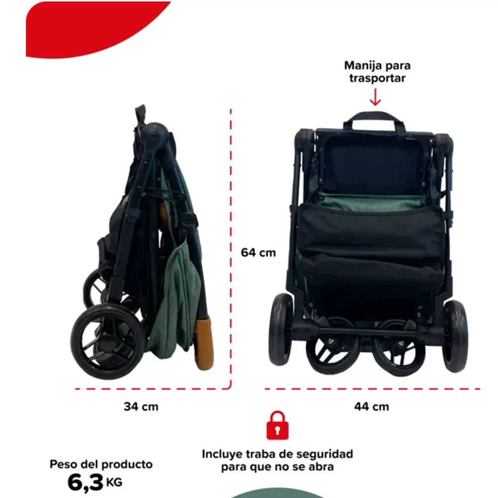 Dimensiones del producto plegado: 64 x 34 x 44 cm.