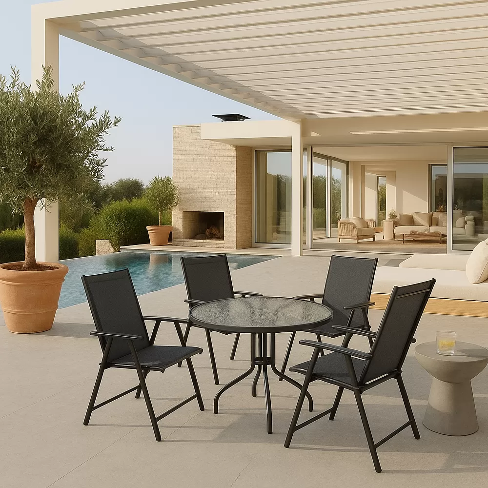 Combo De 4 Sillas Ratan Plegables 1 Mesa 80cm Vidrio Caño