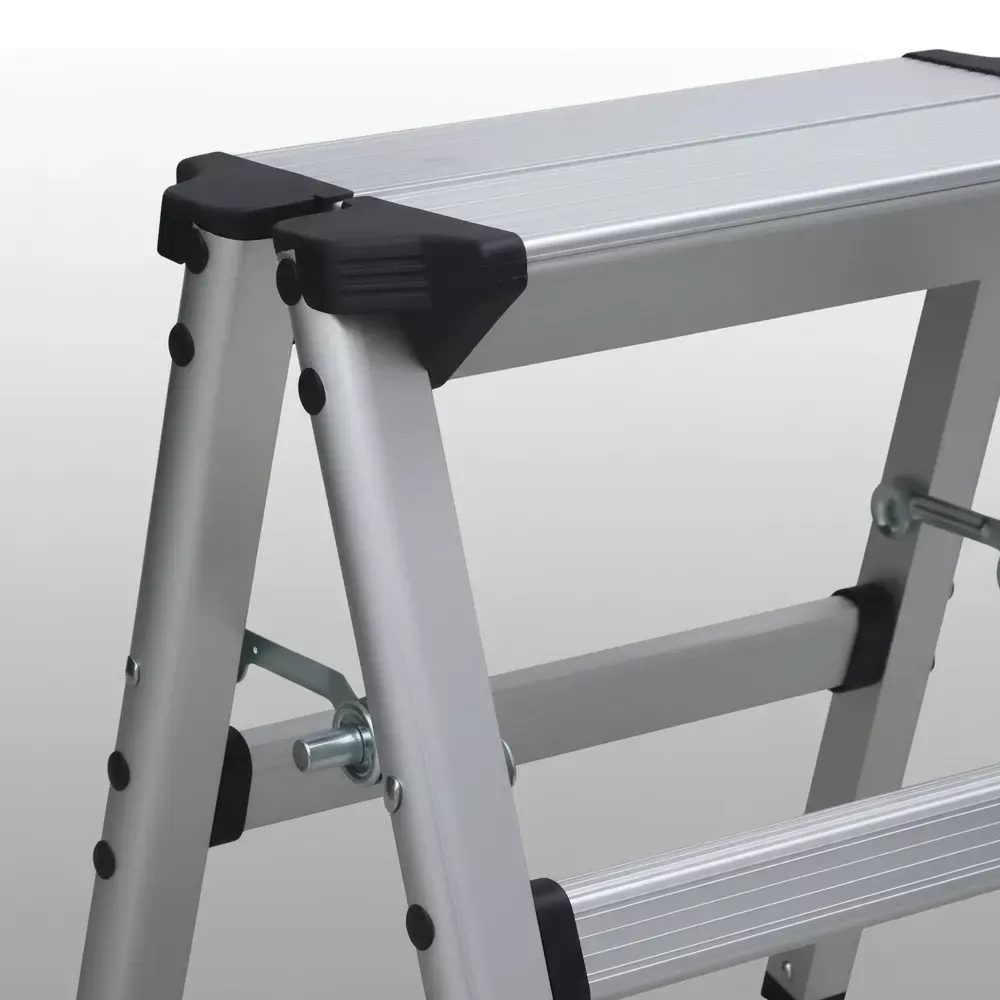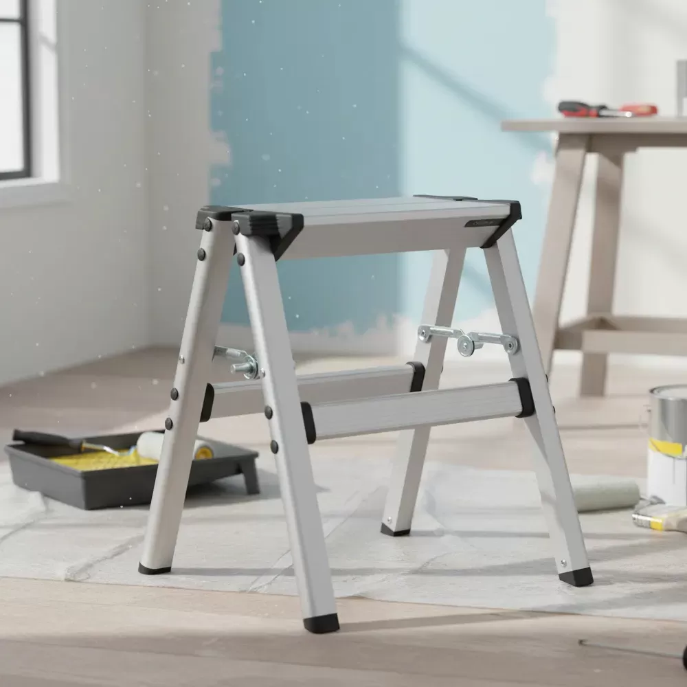 También llamado taburete, el banco escalera de aluminio destaca por su practicidad.