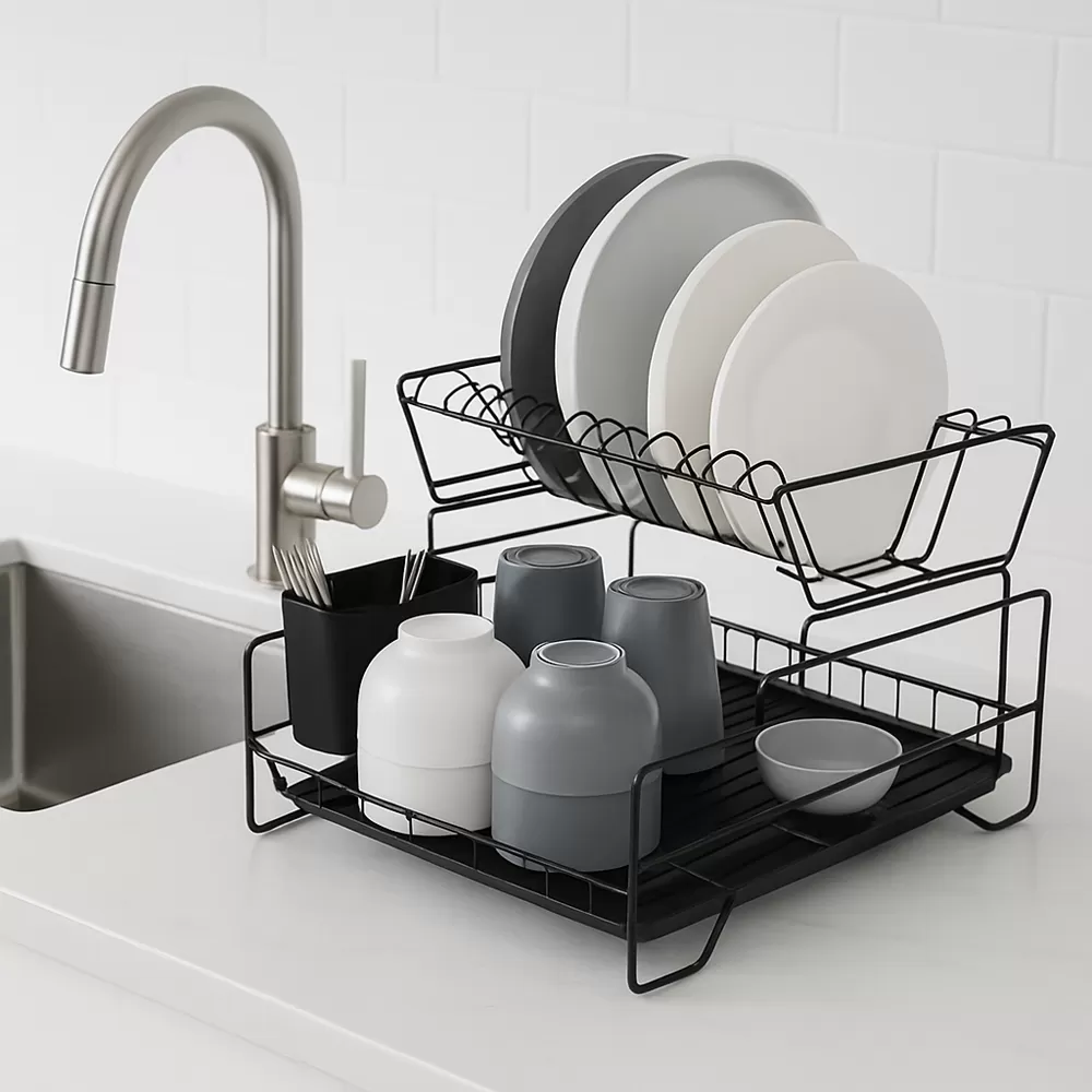 Ideal para quienes buscan una solución práctica y estética, este escurridor es perfecto para mantener tu vajilla seca y ordenada después de cada lavado.