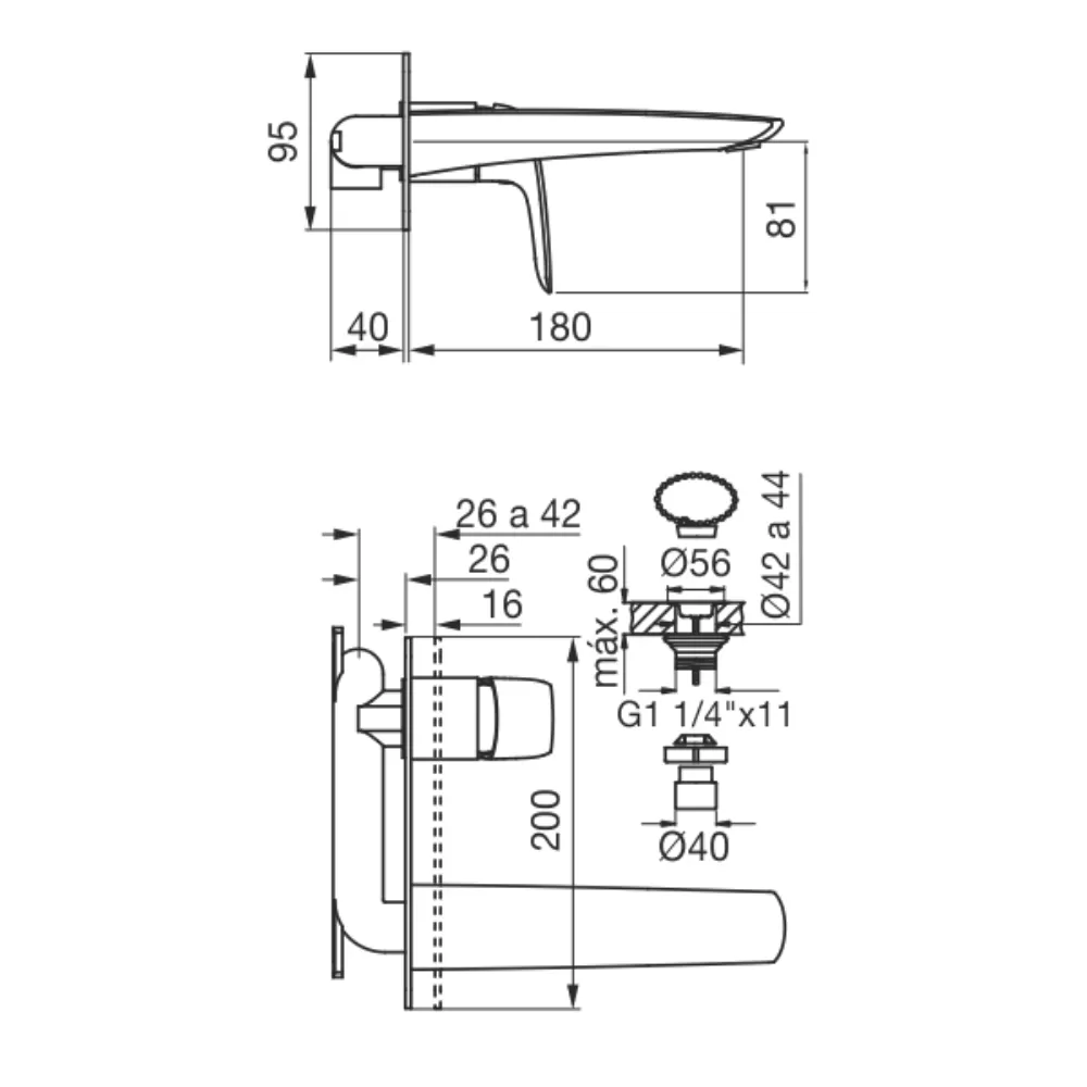 Grifería De Bacha Monocomando Fv Epuyén 0206/l2 Negra Mate