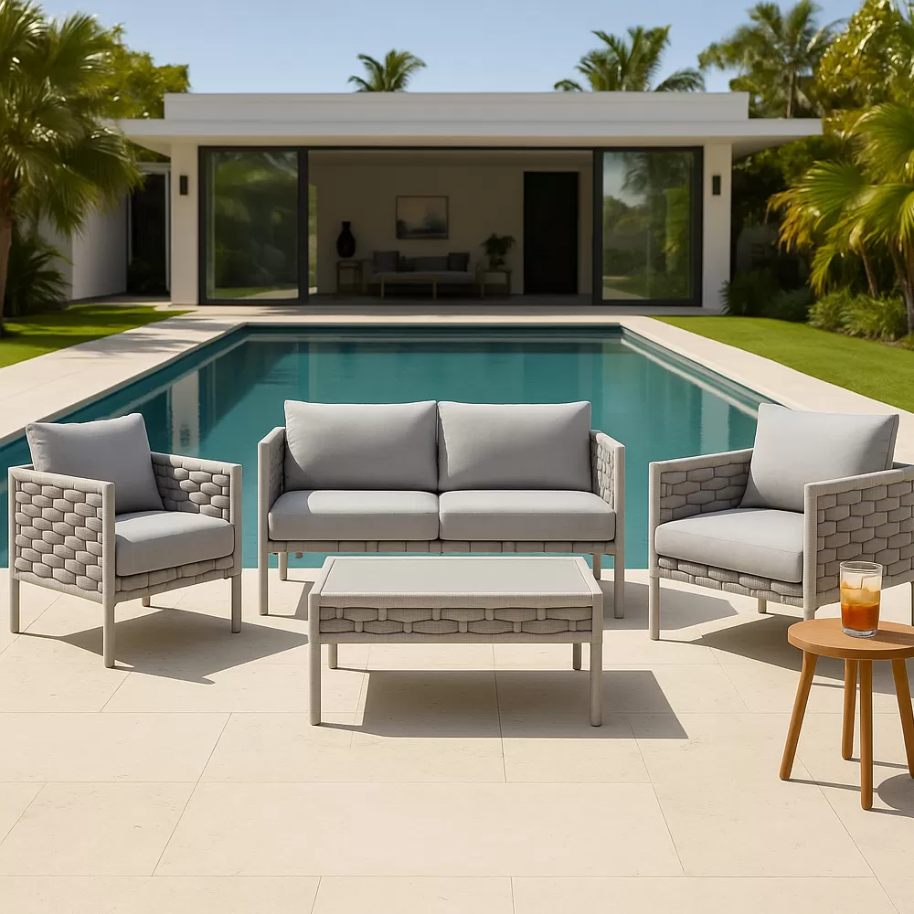 Juego de Sillones Couture Aluminio Loop 1 sofa de 2 cuerpos + 2 sofas de 1 cuerpo + 1 mesa ratona