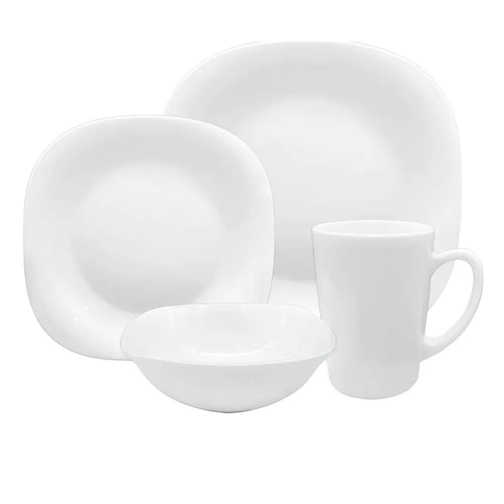 Juego Vajilla De 16 Piezas Carol Cuadrado Playo Postre Jarro Blanco