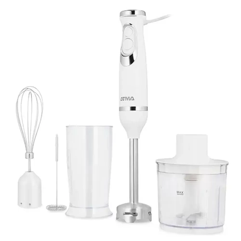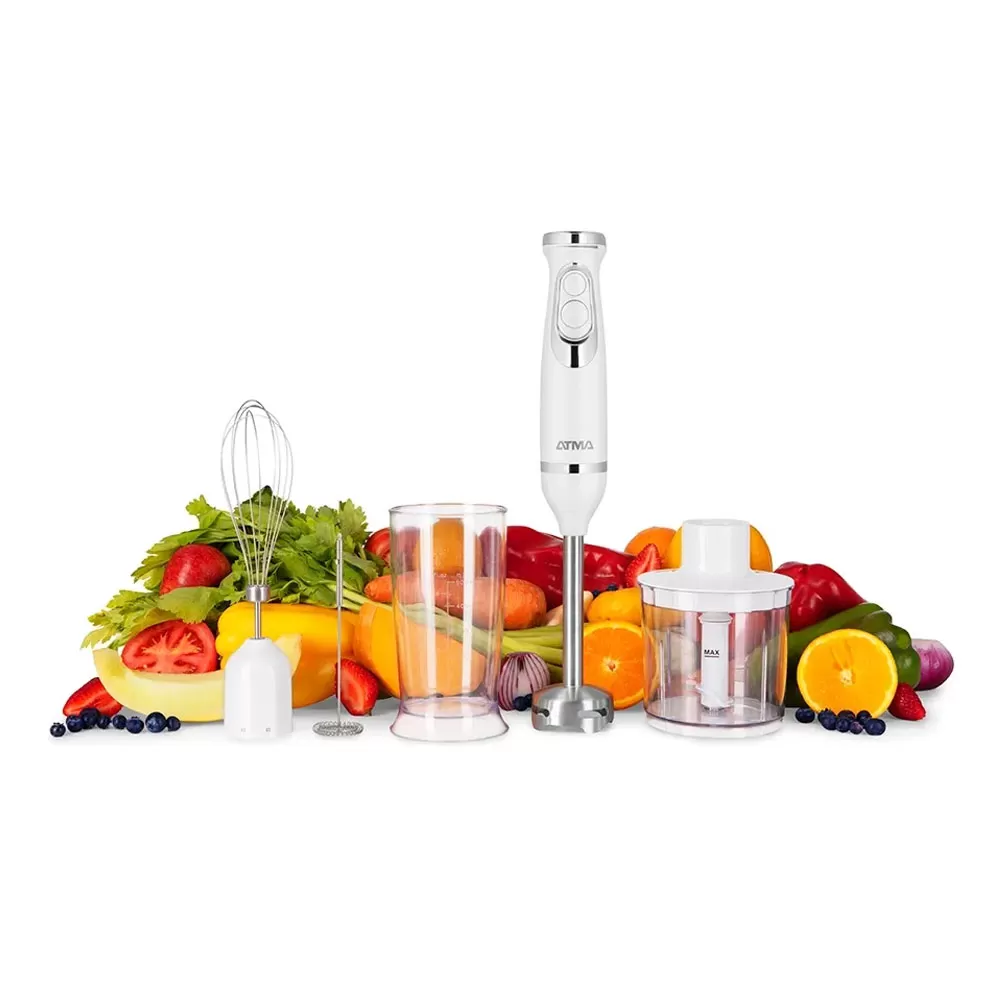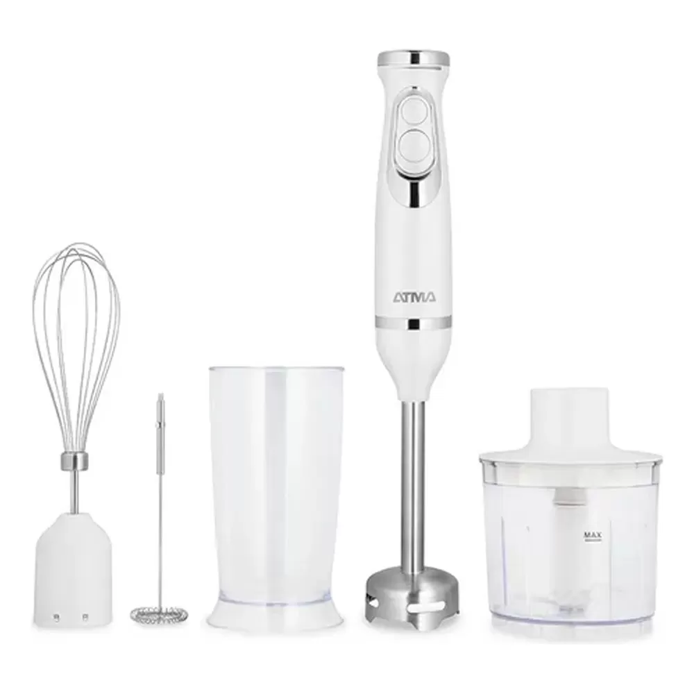 Licuadora De Mano Atma 600w Con Batidor, Espumador Y Chopper - Blanco