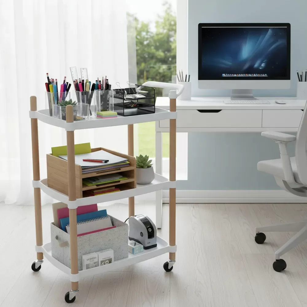 Carrito de 3 niveles de almacenamiento para una organización eficiente en la cocina.