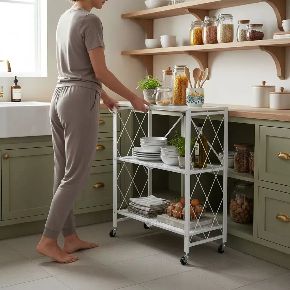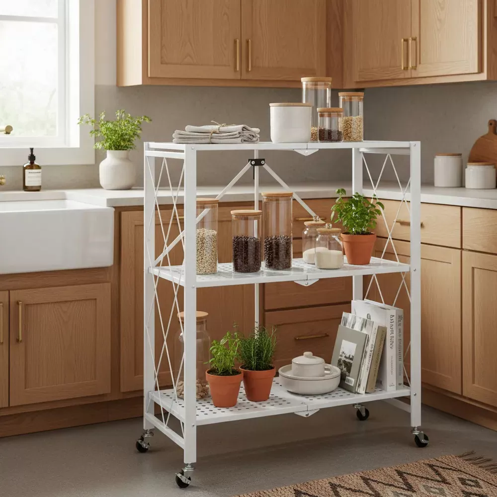 Organizador Multiuso 3 Estantes Plegable Ruedas Blanco
