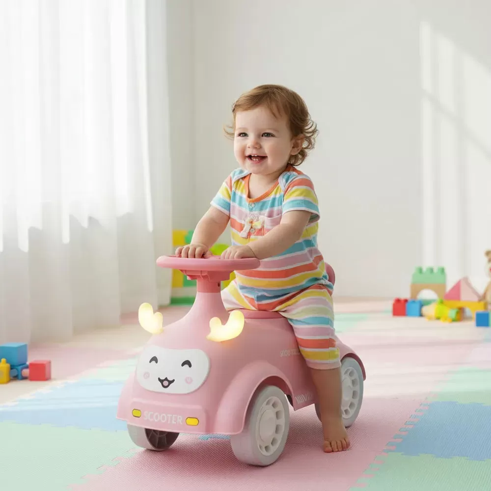 Con luces, música y un divertido diseño, estimula la coordinación y la motricidad de los más pequeños mientras juegan y se desplazan con seguridad.