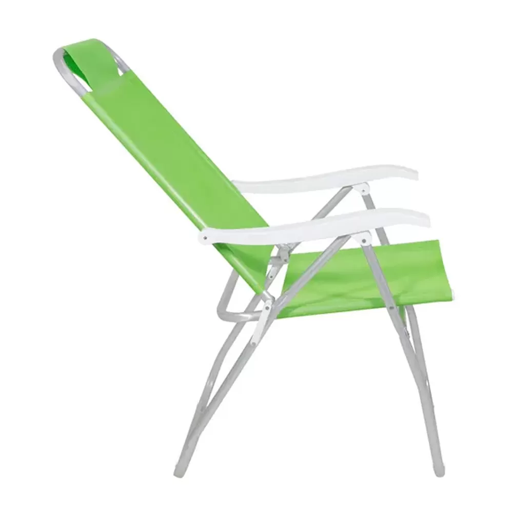 Este modelo fue desarrollado pensando en la comodidad y la practicidad, con reposabrazos de polipropileno, estructura plegable y capacidad para soportar hasta 110 kg.