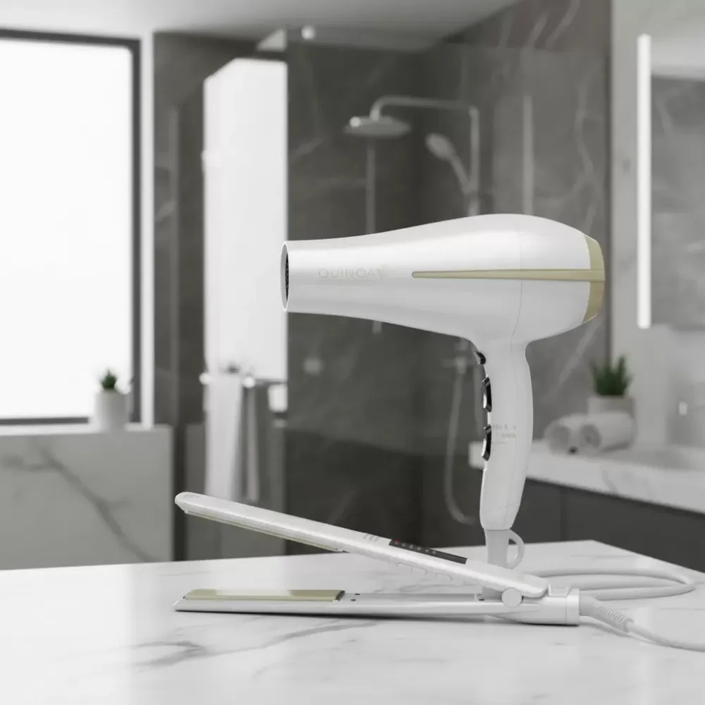 Secador De Pelo Ga.ma Bora + Planchita Elegance Led Quinoa Blanco