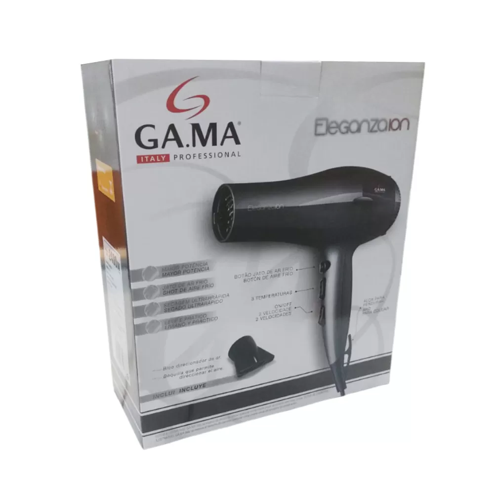 Secador De Pelo Ga.ma Eleganza Ion 2400w 3 Temp 2 Vel Negro