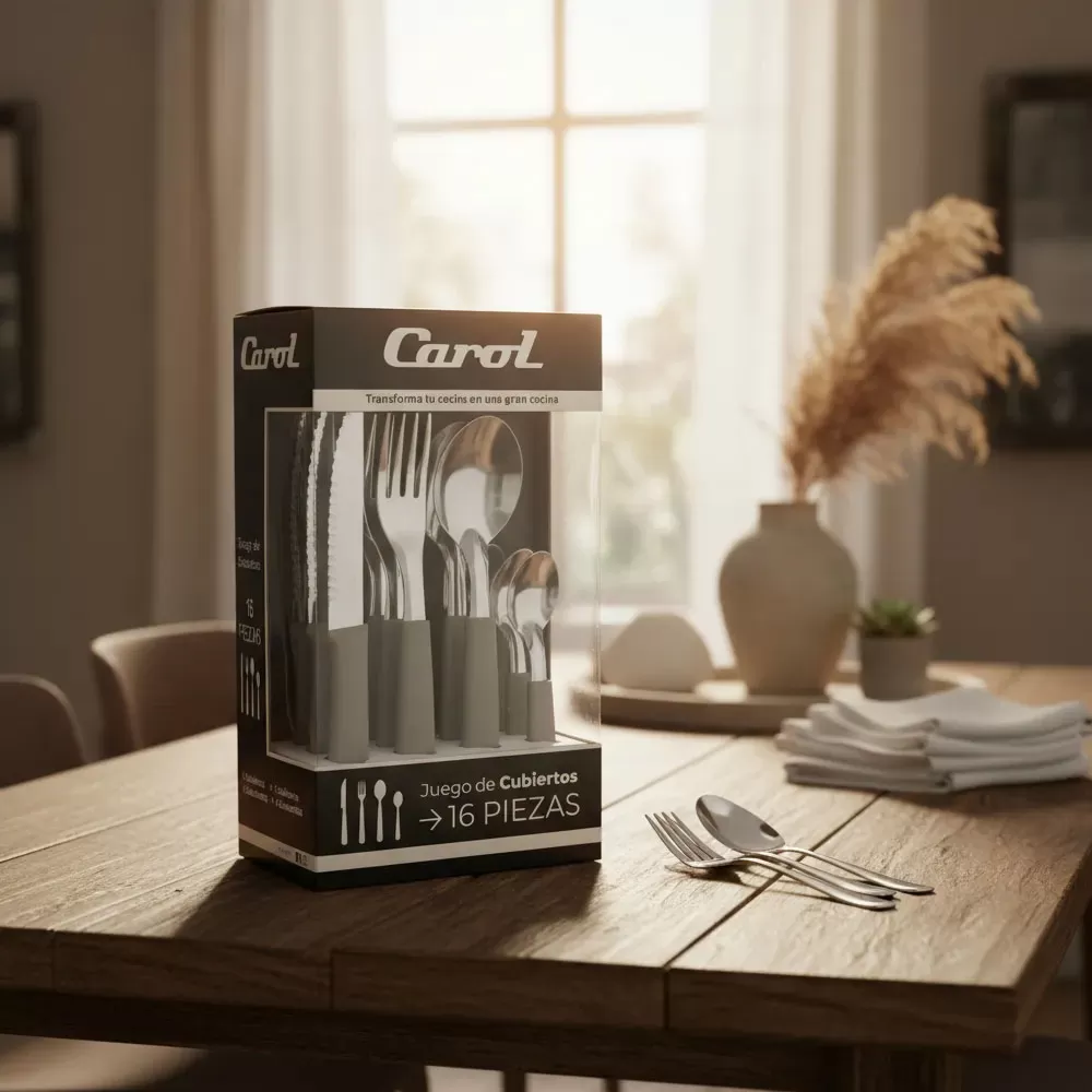 Juego de Cubiertos de 16 Piezas en Acero Inoxidable de mesa CAROL.