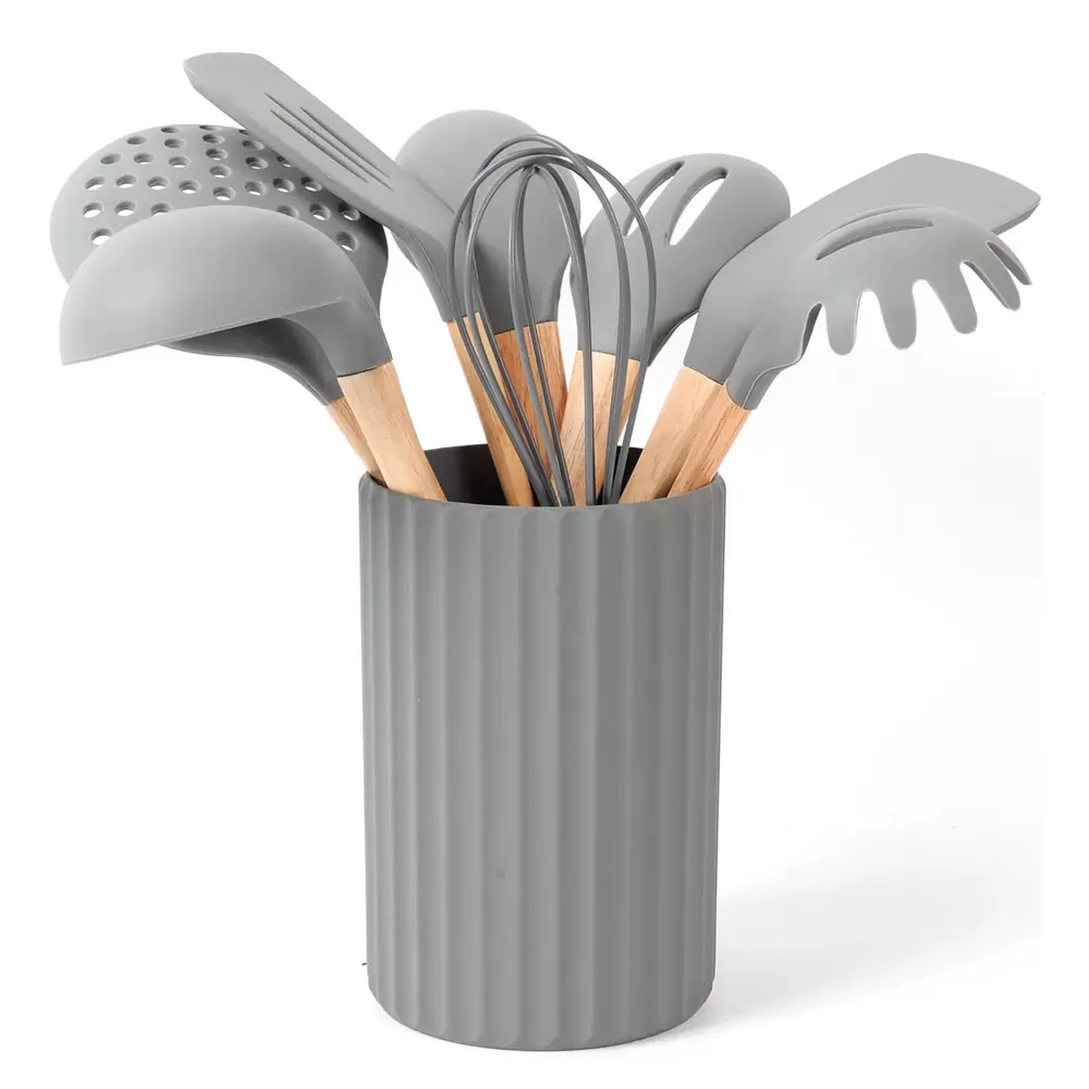Set de 8 utensillos y 1 soporte cilindrico de guardado.