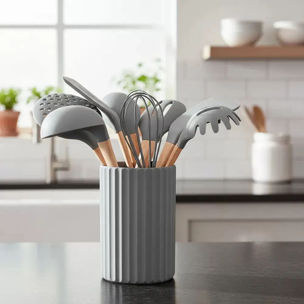 Con mangos de bambu que ofrecen un agarre cómodo y puntas de silicona que son ideales para no dañar tus utensilios, cada pieza es perfecta para cocinar con estilo.