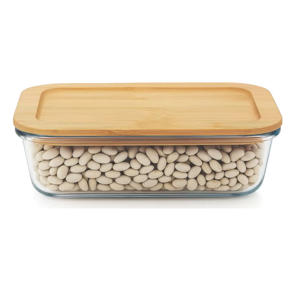 Taper Contenedor Vidrio Hermetico Bambu Carol De 1040ml Marrón Claro