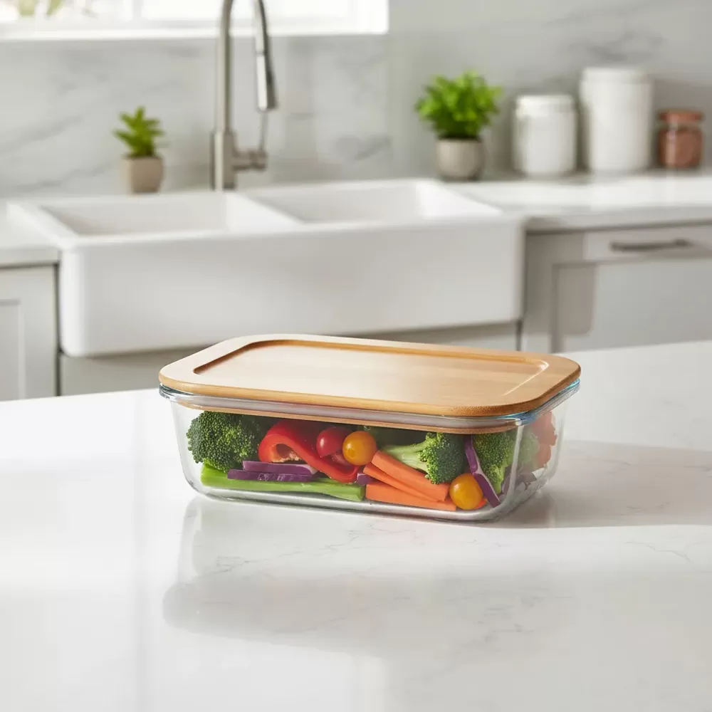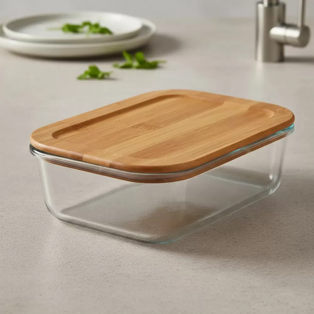 Taper Contenedor Vidrio Hermetico Bambu Carol De 1520ml Marrón Claro