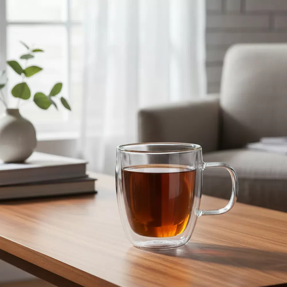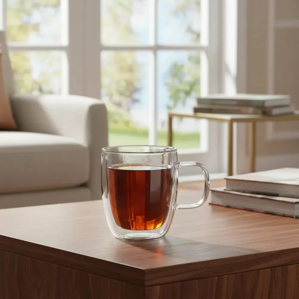 La Taza de Vidrio Café Doble Pared Con Asa de Carol es la elección perfecta para quienes buscan elegancia y funcionalidad en su día a día. Con una capacidad de 350 mL, su diseño redondo y su doble asa permiten un agarre cómodo y seguro, ideal para disfrutar de tus bebidas calientes o frías.