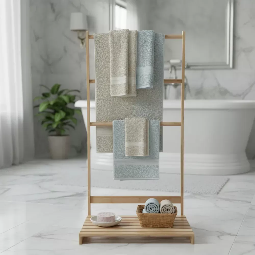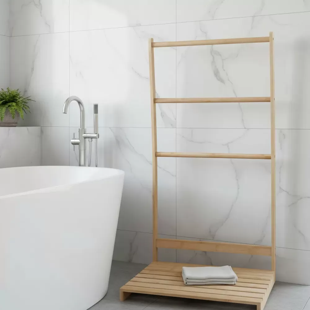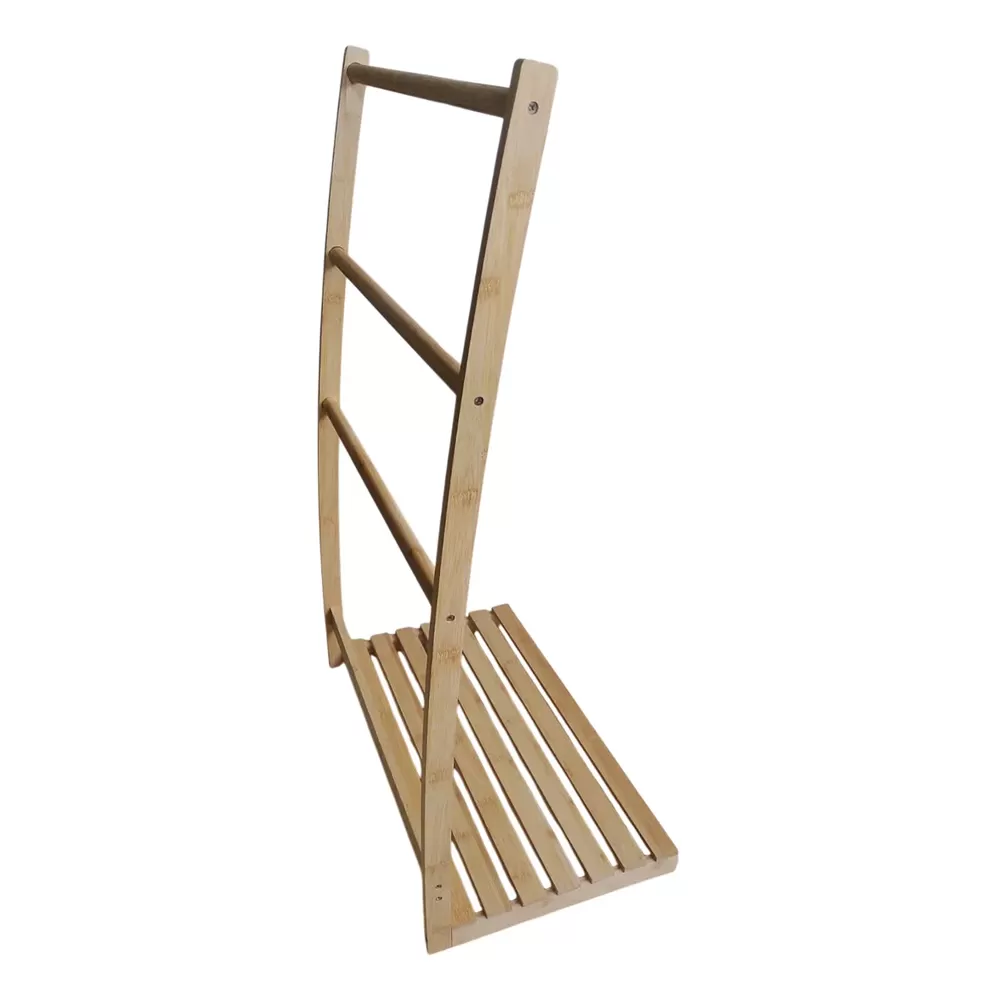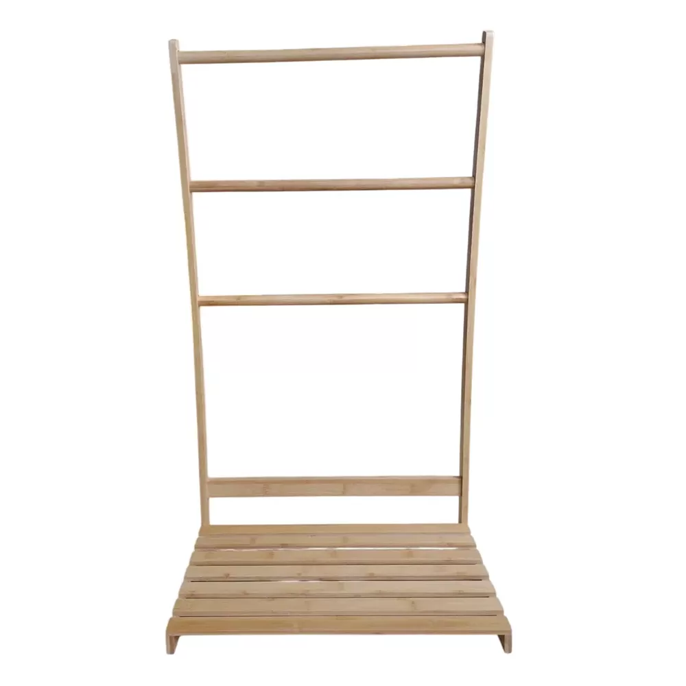 Toallero De Pie Para Baño 3 Cilindros Madera Altura 90cm Marrón Claro