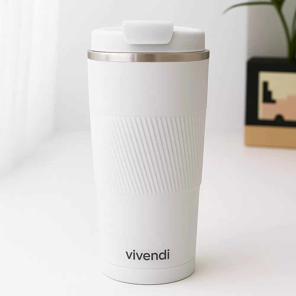 Vaso Termico Acero Inox Con Tapa Frio Calor Vivendi Blanco